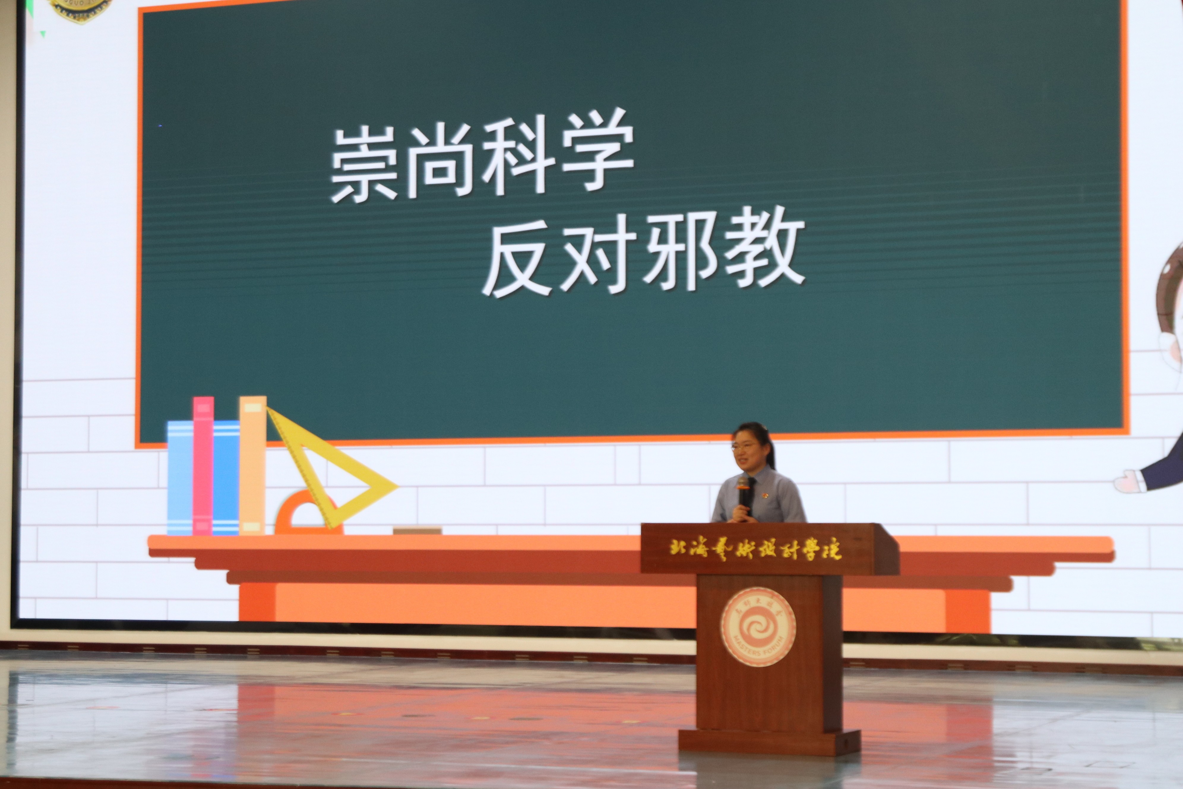 接着,北海市检察院第二检察部干警吴彦儒开展了“法治公益学堂”反邪教警示教育讲座,她通过讲解近年来的典型案例,邪教组织的严重危害性和开展反邪教斗争的必要性及防邪反邪知识,让全体师生更清晰的了解到邪教组织带来的危害。