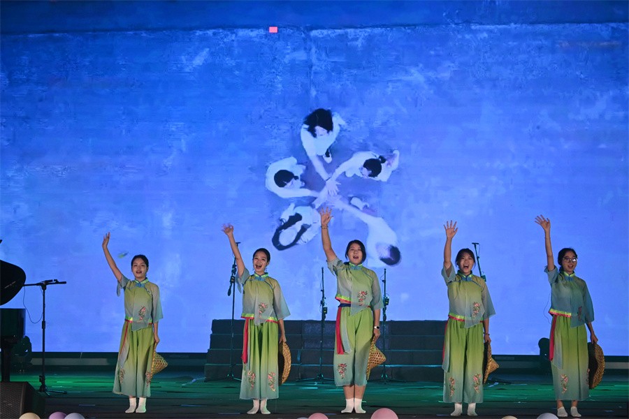 在第一篇章“原创作品”中,一曲青春洋溢的《疍家美食颂》拉开了音乐会的序幕,由五位学生主持的国家级大学生创新创业项目《疍歌笙生——以文创与原创音乐作品宣传疍家文化》阶段性成果展现 AI技术与人文艺术的和谐交汇赋予了传统文化新的生命力,诠释了北海本土疍家文化的独特魅力和价值。原创校园合唱短剧《活成一束光》由师生共同编创,从剧本写作、唱段编选、剧情视频剪辑到合唱排练,全方位展现了学生在艺术教学、声乐、合唱、编创、舞台表演等方面的综合能力。