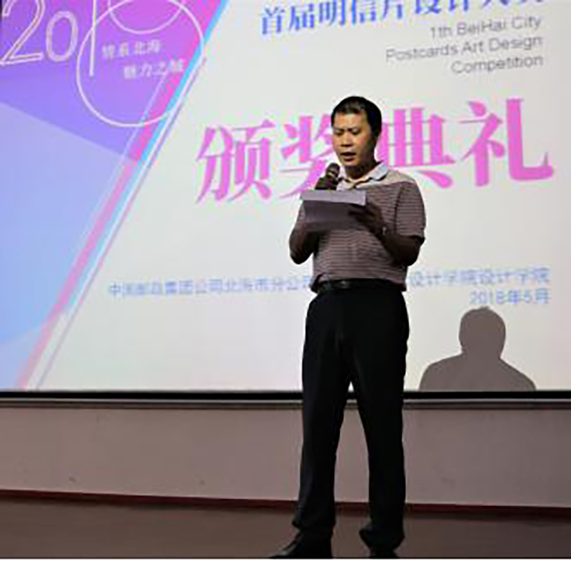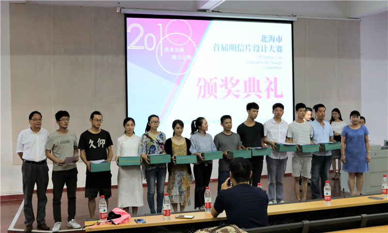2018年5月18日下午4点半,由中国邮政集团公司北海市分公司与北海艺术设计学院设计学院联合主办的北海市首届明信片设计大赛颁奖典礼在我校伦理楼107举行。
