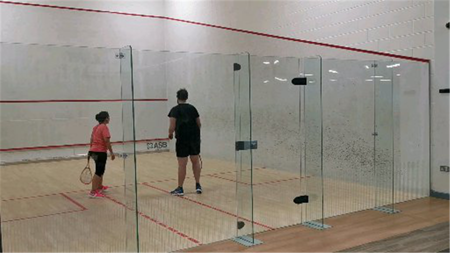 本周我们还上了体育课。同学们体验了篮球、网球、乒乓球、壁球和学校的体育馆的其他项目。德比大学超大的体育中心为同学们准备几十种体育课程。一个下午大汗淋漓,平时动都不爱动的女生,居然也打起了篮球。