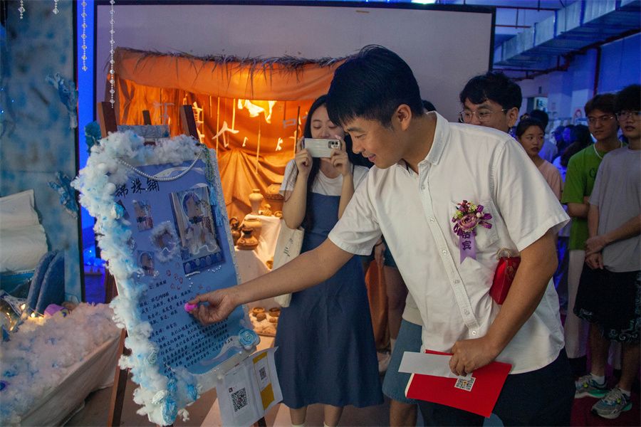 本次展览共布展陈74组及主题性陈设方案86组,作品主题突出,风格鲜明。观展过程中,展览观众们密切交流,以直观视角观看海洋文化的别样精彩,领略创作者的独特匠心,感受课程思政与海洋文化的巧妙结合,展览现场气氛热烈,大家互相学习,互相点评,形成了良好的学习交流氛围。
