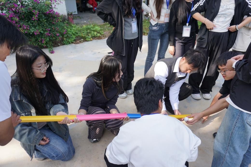 在团队协作环节,同学们先后参与了“乒乓球轨道接力赛”和“纸牌解码竞速赛”。通过轨道传球的默契配合与纸牌排序的沟通协作,大家在轻松的氛围中提升了团队合作、有效沟通与集体决策的能力,深化了对文明协作的理解。