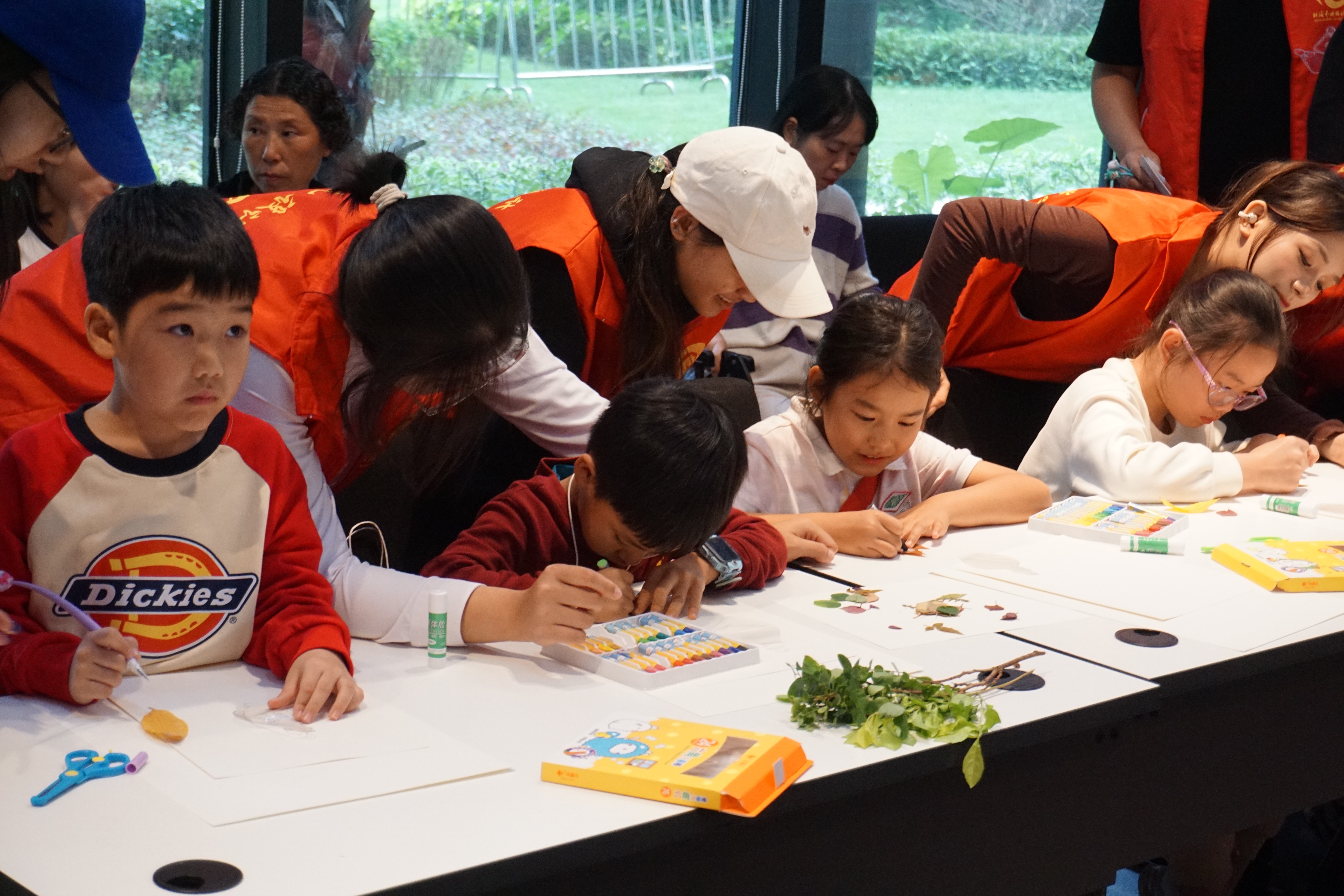 亲子绘画”在社区共享会议室温馨开启。传媒艺术学院的志愿者们充分发挥专业特长,化身“艺术导师”,引导孩子们以“我眼中的秋天”为主题展开创作。在志愿者一对一陪伴下,小朋友们挥洒童真色彩,将金黄的落叶、高远的蓝天、欢笑的家人一一呈现在画纸上。现场氛围温馨融洽,原本静谧的空间化作流动的色彩海洋,洋溢着浓厚的艺术气息与亲子温情。
