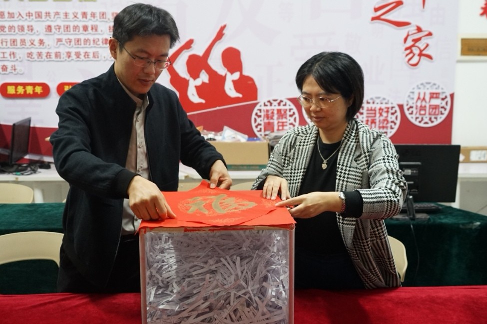 元旦晚会的抽奖封箱仪式是我们对真诚与美好的期许。让我们共同等待元旦晚会的启幕,看看谁能揽走这份马年专属的幸运吧。(周怿辰、王哲、陈梓暄、王静/摄)