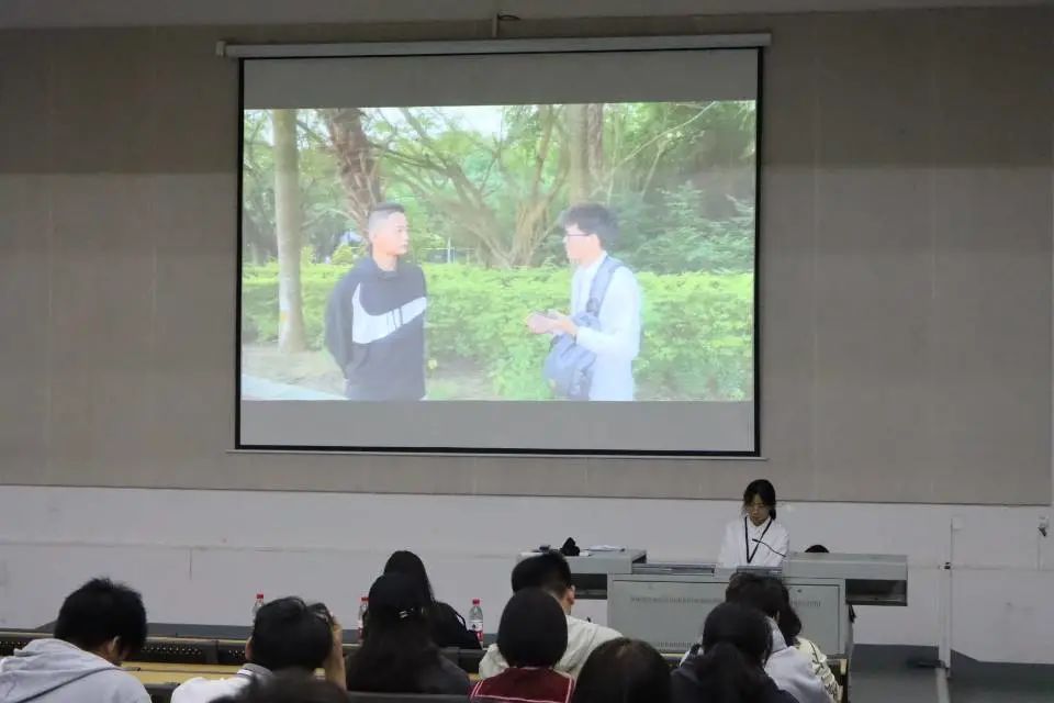 活动第二项:观看采访视频。采访人在校内随机挑选学生回答问题,视频内容包括了解校内学生的学习情况、心理状态,对专业的兴趣程度,想要扩展的知识面等,让我们较为全面地了解学生的学习情况与积极性。我们可以发现,大多数学生是以兴趣来选择专业并为之奋斗的。